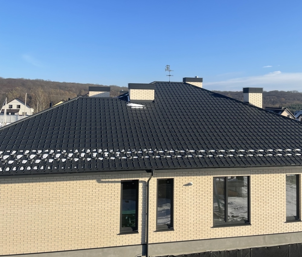 - Матове покриття надає дахам сучасного та благородного вигляду, що стійке до впливу УФ променів та вицвітання.
