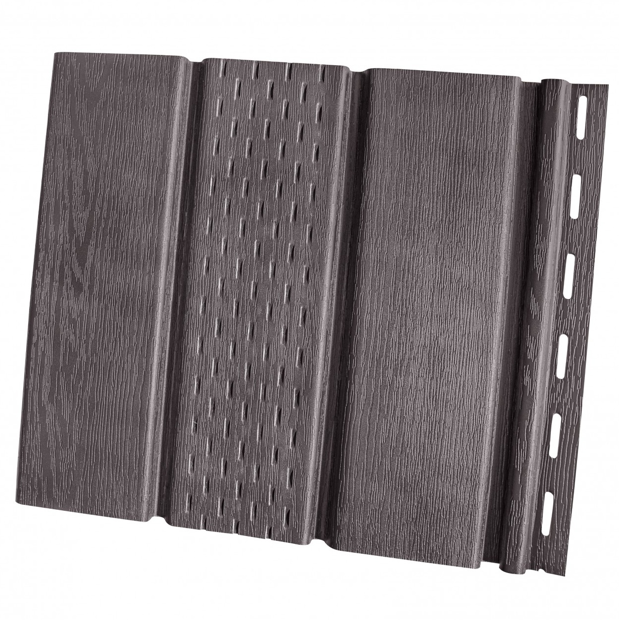 Софіт Rainway (Ренвей) Коричневий перфорований має гофровану форму і перфоровану поверхню, що дозволяє повітрю, не застоюючись, вільно циркулювати в просторі під покрівлею.